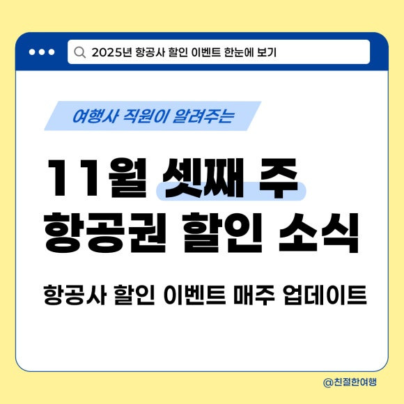 | 여행 준비 완료! 11월 넷째 주 항공사 할인 이벤트 한눈에 보기🧳 (0) | 2025.11.24 |